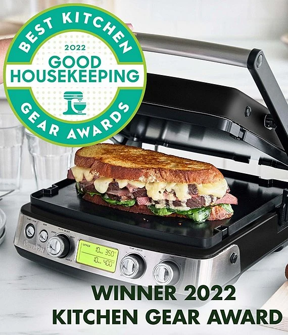 - The versatile design opens flat for a larger cooking area and multi-surface grilling