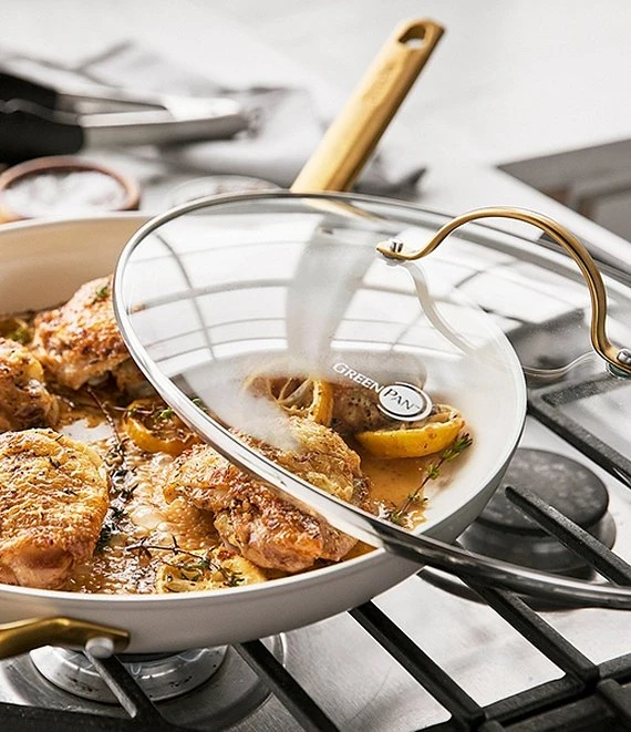 - Tempered glass lid (oven safe up to 425°F) lets you keep an eye on things without losing steam