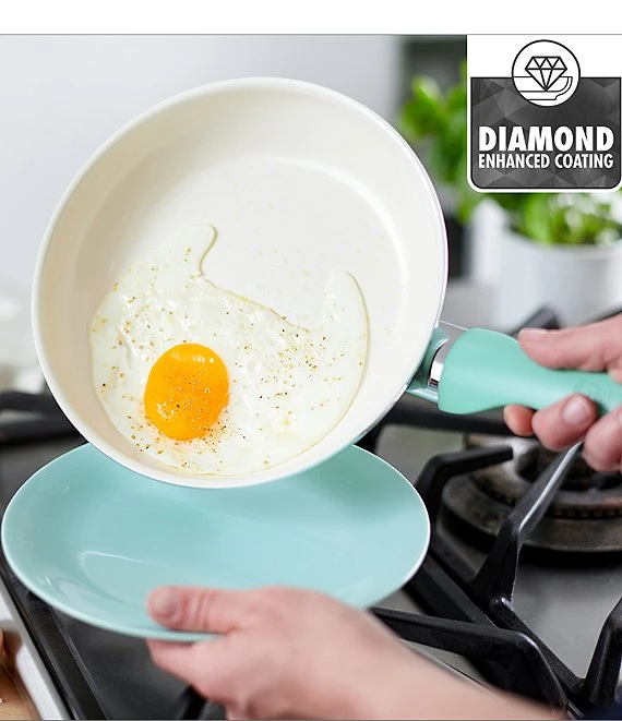 The Rio Collection brings a touch of color to your kitchen. The Rio 16-piece ceramic non-stick cookware set in turquoise adds a subtle touch of elegance, complete with Thermolon healthy ceramic non-stick coating for ease. Rio offers you a tasteful mix of optimal heat distribution and 100% cooking and cleaning convenience. After all, GreenPan quality also extends to the details, from the stay-cool Bakelite handle to the heat-retaining base.