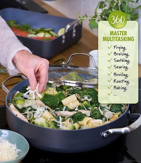 The GreenPanโข Valencia Collection is the cookware of your dreams. The durable hard anodized body allows for maximum strength and scratch resistance and is complete with Magnetoโข technology, featuring ferromagnetic particles reinforced with copper in the base to give you superior induction efficiency and cooking results on all stovetops. Magnetoโข advances your induction cookware; it guarantees base stability, ensures your cookware will never warp, and results in perfectly even cooking without the loss of energy or heat. Coated with Thermolonโข Minerals healthy ceramic non-stick, now metal utensil safe and lasts even in the face of intense use. Stainless steel handles allow your cookware to go swiftly into the oven and the dishwasher-safe coating makes clean-up stress-free.